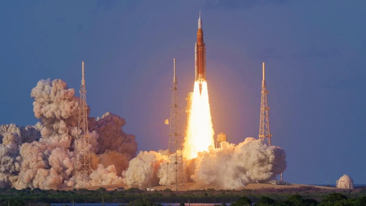 SLS launched with 8.8 million pounds of thrust power, carrying the Orion spacecraft into Earth orbit.